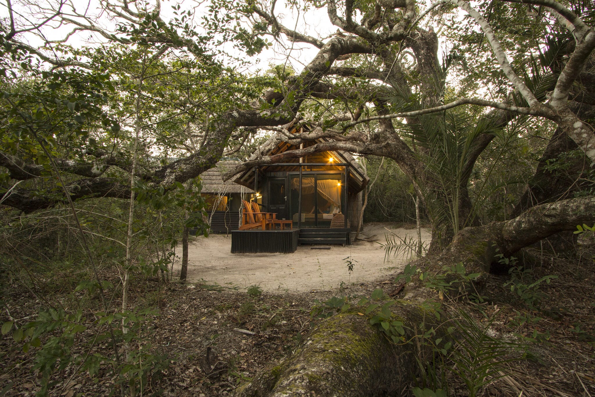 Being the perfect base for exploring the wetlands and of nearby pristine beaches, the lodge and its luxurious rooms are elevated above the ground, with access to the chalets requiring an adventurous trek along soft sandy pathways. Each chalet is separated from each other providing enough distance to keep accommodations private. There are two interconnecting family rooms for bigger groups, a great way to enjoy a family-friendly safari. The main lodge, which features a wooden deck that circles around a Zulu podberry tree, hosts a lounge and the dining area, where breakfast, lunch, and dinners are served.