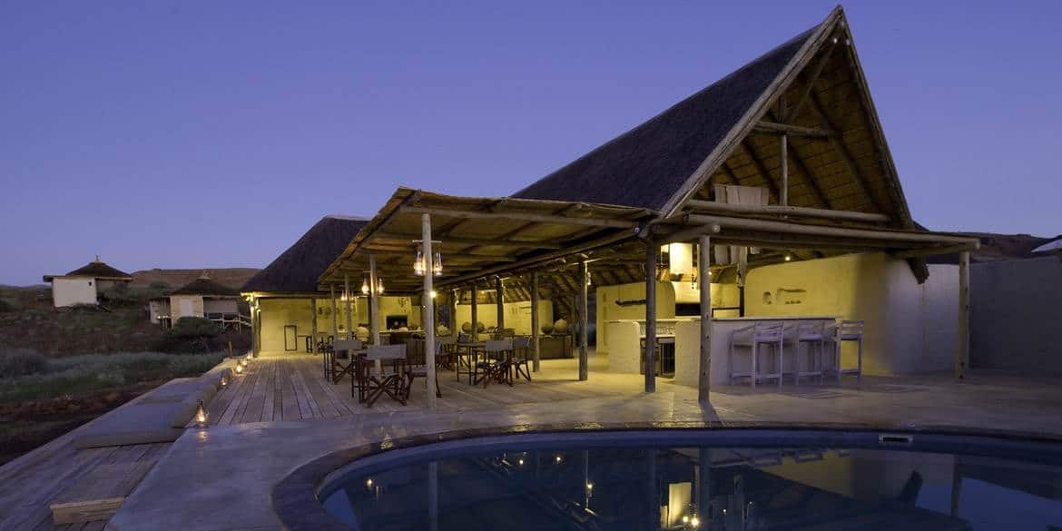The beautiful camps at Damaraland lodge have been constructed using both modern and ancient methods. Accommodation at the Camp consists of 10 adobe-styled thatched units raised on wooden decking which form a beautiful and panoramic view of the valleys, plains and peaks of the Etendeka mountains.