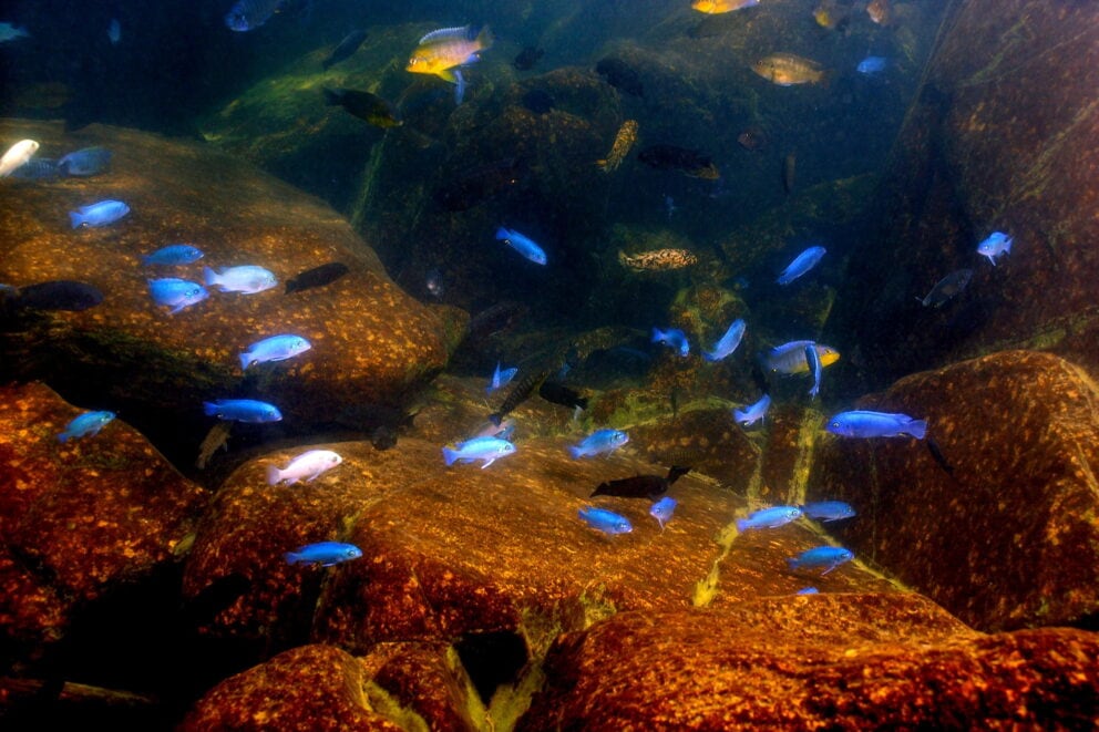 While snorkelling, you are most likely to encounter two main groups of these vibrant fish, mbuna (or rockfish) and haps. Mbuna are small, territorial cichlids that turn the lakes’ rocky shorelines into a living kaleidoscope. Look out for the intense, gem-like hues of the electric yellow cichlid and the striking patterns of the blue zebra cichlid.