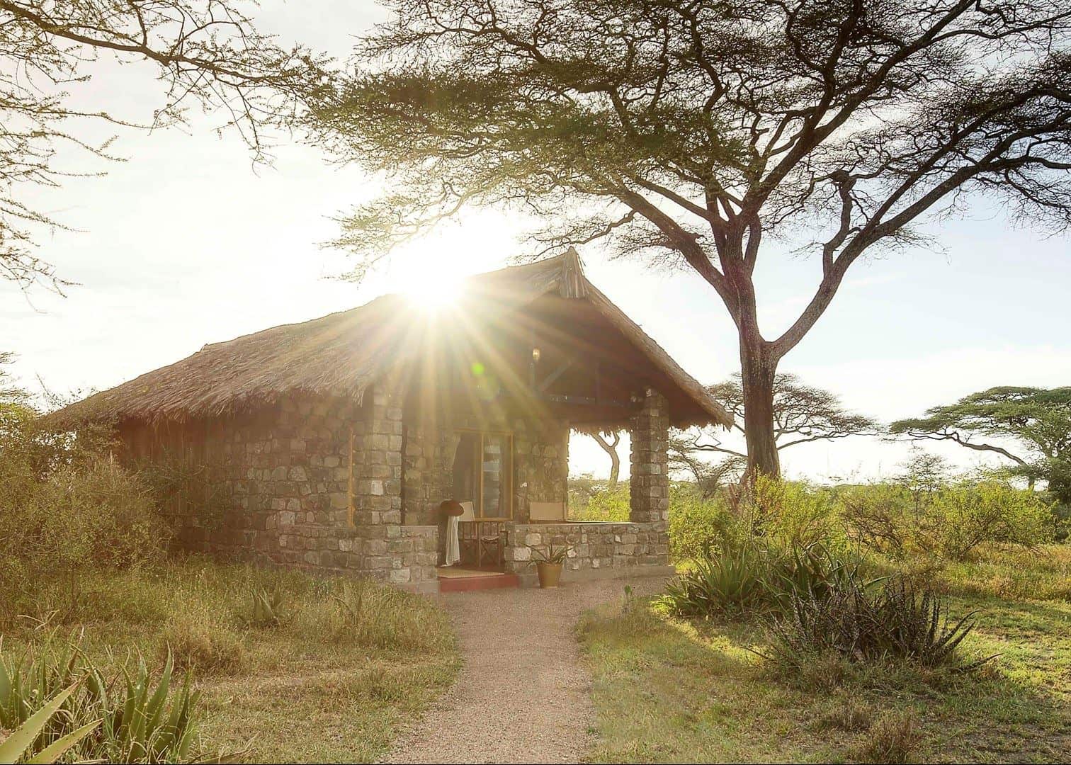In keeping with the concept of low-impact tourism and minimal human footprints, Ndutu Safari Lodge is hidden unpretentiously among thorny acacia trees and the brushing grasslands of the Serengeti. These stone and thatch en-suite cottages (34 in total) blend rustic charm with modern amenities, simple homestyle food and adventurous activities. With wraparound views of the swamps, soda lakes and shimmering Lake Ndutu north of the camp, this multi-faceted lodge is a wildlife mecca.