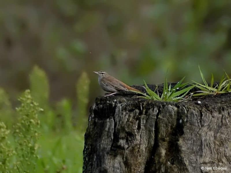 The Rufous-tailed Scrub-robin perched on a tree stump in Zeekoevlei's picnic area. Image by Neil Ebedes.
