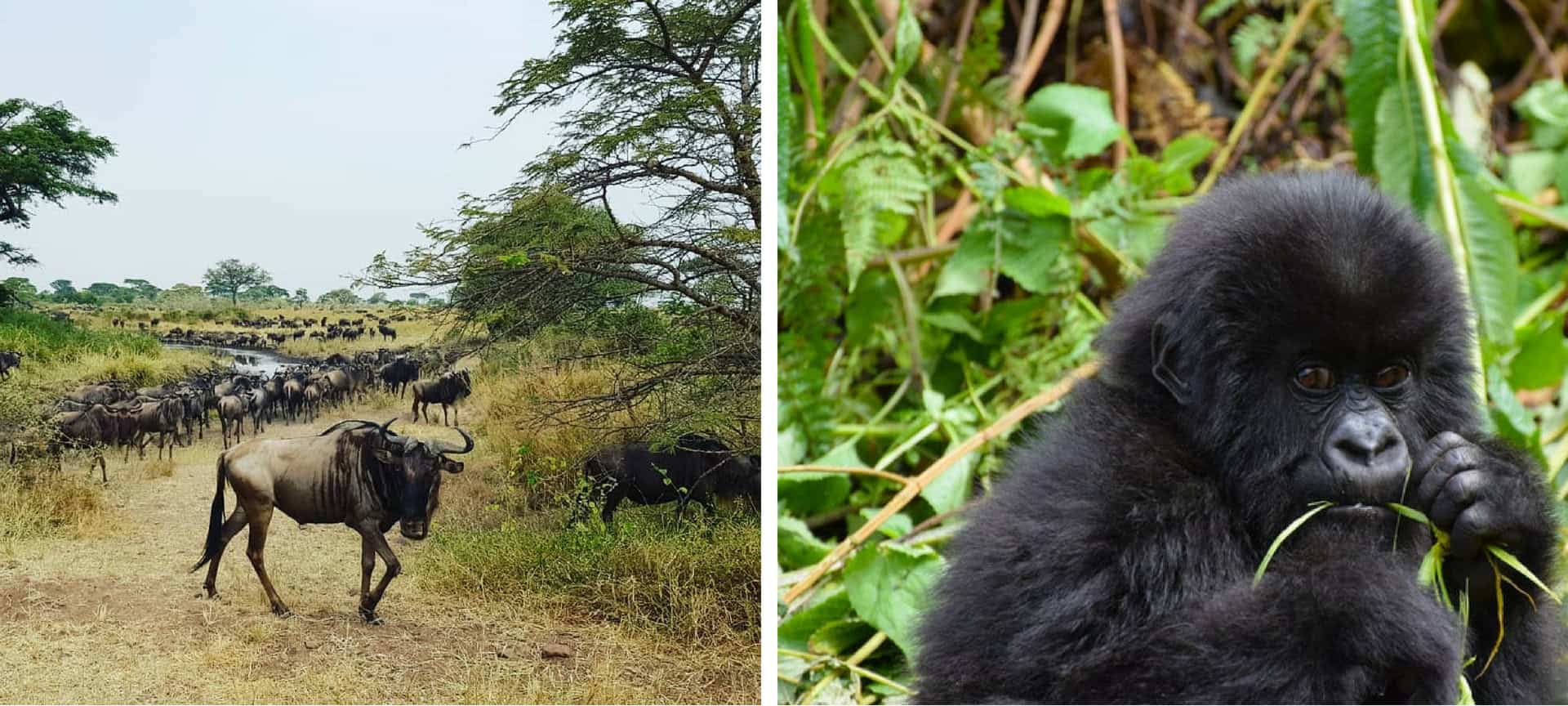 Try this combination safari that includes both gorilla trekking in Rwanda and the opportunity to see the Great Migration from both side of the Mara River: