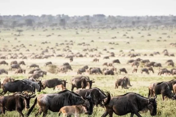 Massive wildebeest herd was spotted grazing in the central area of the Serengeti National Park. The calves have moved a great distance since the calving season in the south!