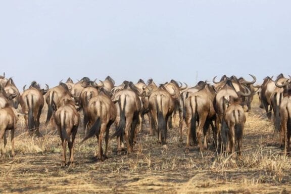 These wildebeest were spotted at crossing point nr. 05. River crossings can take sometimes take a few hours non-stop. Wildebeest have to cross these rivers filled with rapid currents and crocodiles. July is prime time for witnessing this incredible feat of endurance and instinct.