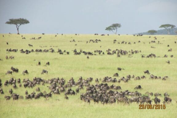 Quick update. Wildebeest herds continue to pour onto the plains east of Bolagonja and Nyamalumba areas in the Northern Serengeti. We're hoping to start seeing the crossings not too long from now. Large herds of zebra are still being seen around Lemala Ewanjan Tented Camp in central Serengeti.