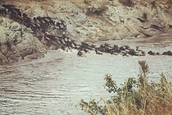 Lisa Zitman saw thousands of wildebeest, one behind the other, crossing the Mara River in search of greener grazing pastures.