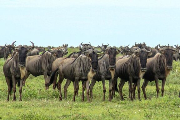 Wildebeest herd spotted in the central Serengeti. Wildebeest in Seronera usually begin gathering into massive herds during this time of year before their journey north.