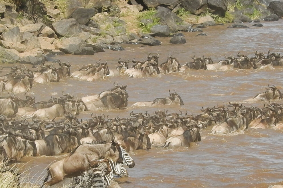There was a good crossing this morning on the Mara River at the cul de sac crossing point going from east to west with an estimated 20,000 animals crossing and four taken by crocodiles.
