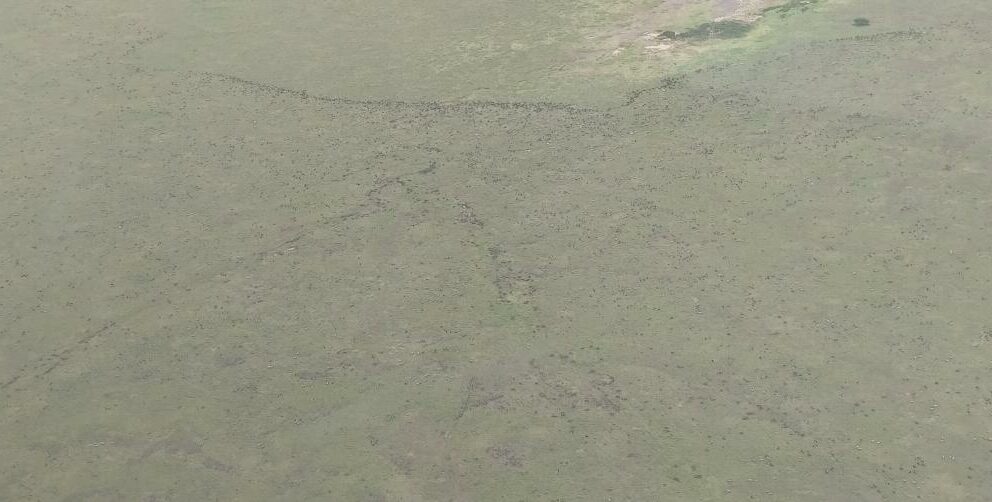 Capt. Lucas Assenga saw a big herd of the wildebeest and zebra from the bird’s eye scattered between 7nm and 14nm northwest of the Ndutu Airstrip.