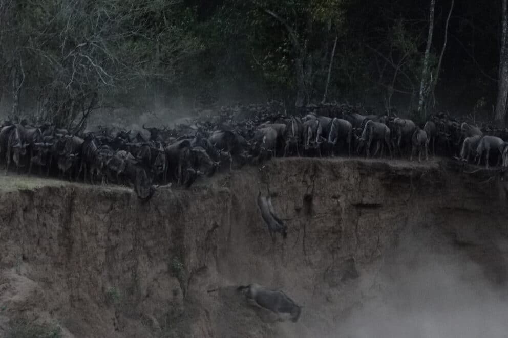 Hi Carel – After watching wildebeests go back and forth to the cliff face debating whether to jump a baby was pushed off which kick started a crossing. Many broke their backs and legs, then the marsh pride of lions came waiting for them at the other side killing all the injured as well as many baby’s… everyone was hunting including the sub adult cubs, 9 wildebeest killed then a leopard turned up and began hunting too they were throwing themselves off a really high cliff face to jump into the water it was hard to watch. Our guides have never seen anything like it and we have been in the Mara 40 + years, I will send you the proper write up and photos when I get them. Photo credit Moses Manduku