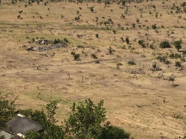 Just a few wildebeest around Four Seasons, but scattered herds of zebra have started amassing around the Lodge since the start of the week – feeding on the drying grass that is left over from when the wildebeest were here in June.