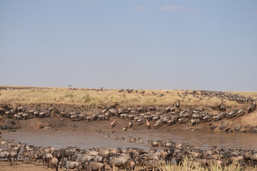 The rains have started to pour again in the Mara Reserve yesterday morning. A good number of gnus, zebras and topi's crossed at Mara River Main Crossing point and also at Look-out hill crossing point (from north to south).
