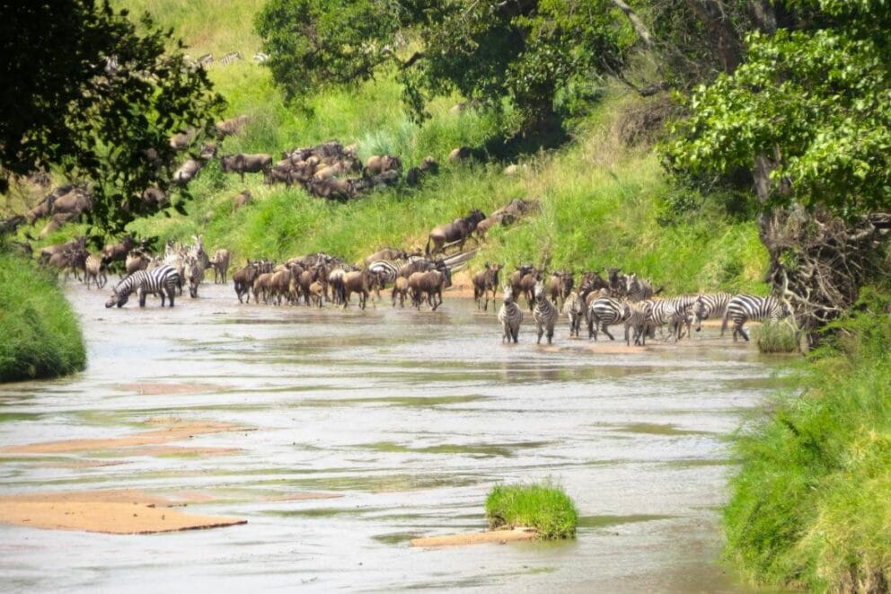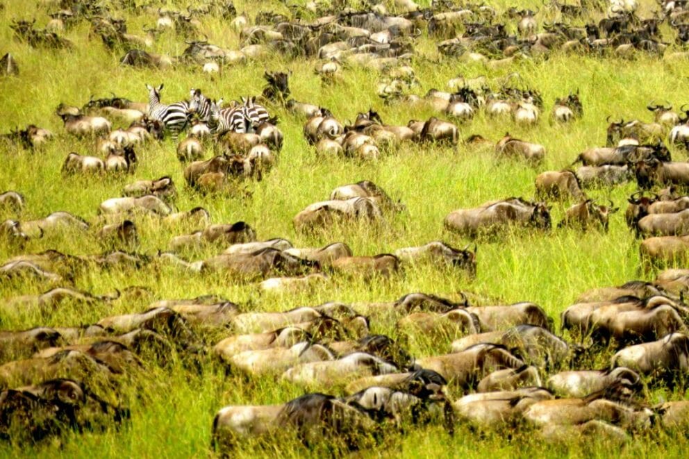 Sala's Camp says thousands of wildebeest and zebras have arrived in front of camp over the past few days. Here are some of the images.