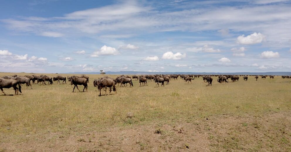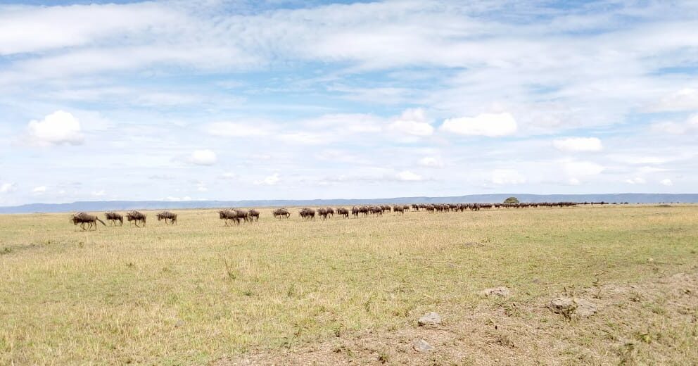 Head safari guide Michael Wachira spotted one of the last groups near Purngati Bridge leaving the Mara.