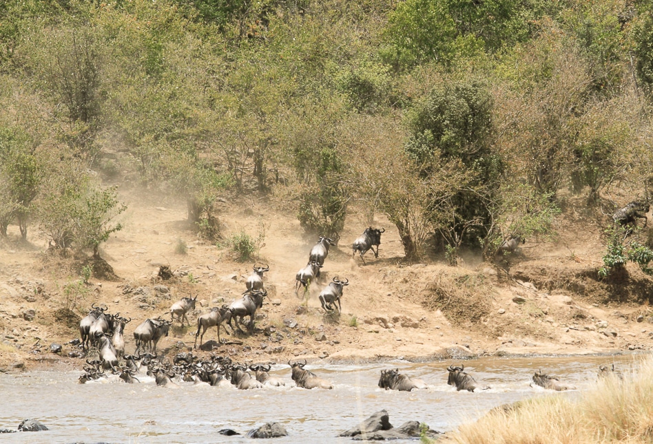 Hi Carel, There were many wildebeest crossing yesterday at the main crossing going south West, these are the resident/loita wildebeest. Photo courtesy of Jurgen Paliko. Thanks, Patrick