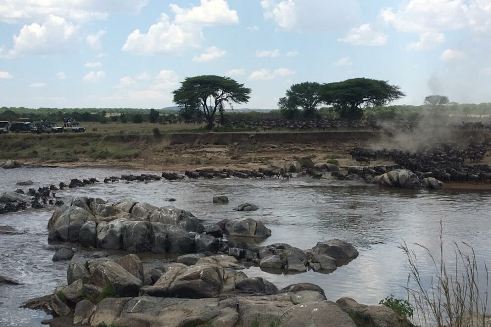 ENQUIRE TODAYThe wildebeest migration is still out in full force in the Serengeti National Park. Safari guide Karim captured the herds crossing point number 7 in the Mara River.