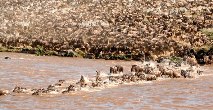 Front-end update – So yesterday there were thousands around the Lookout Hill area and crossing here. They looked to be moving northwards, this morning we saw a very big crossing of wildebeest at the main crossing area on Paradise Plain close to Governors Camp incredible – Jacob Lelesara Governors Camp Guide