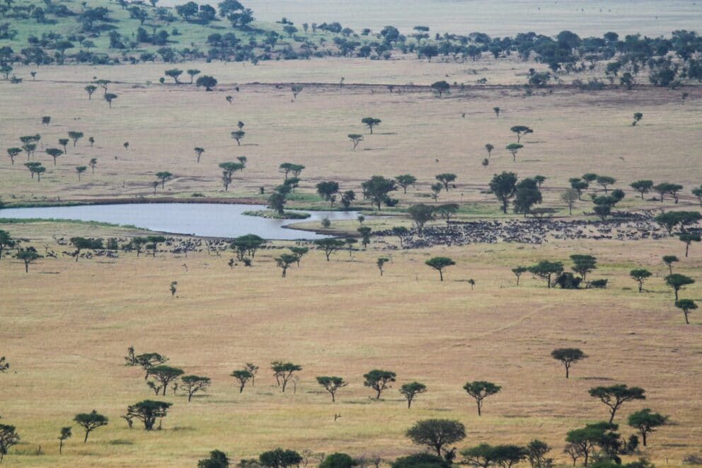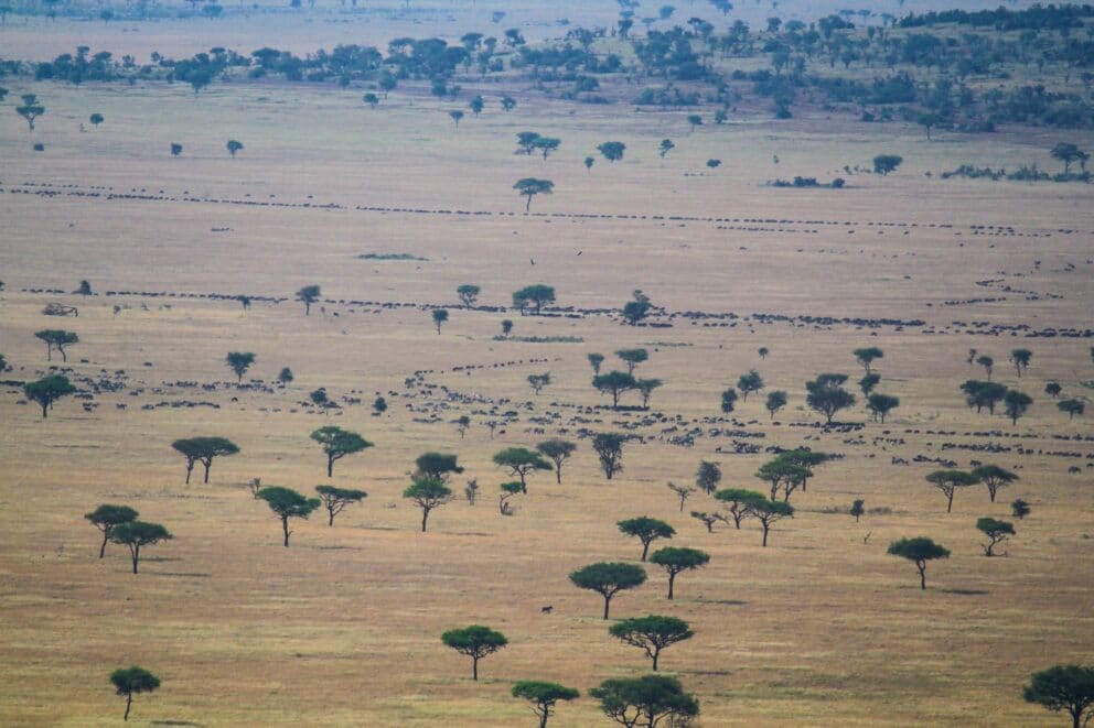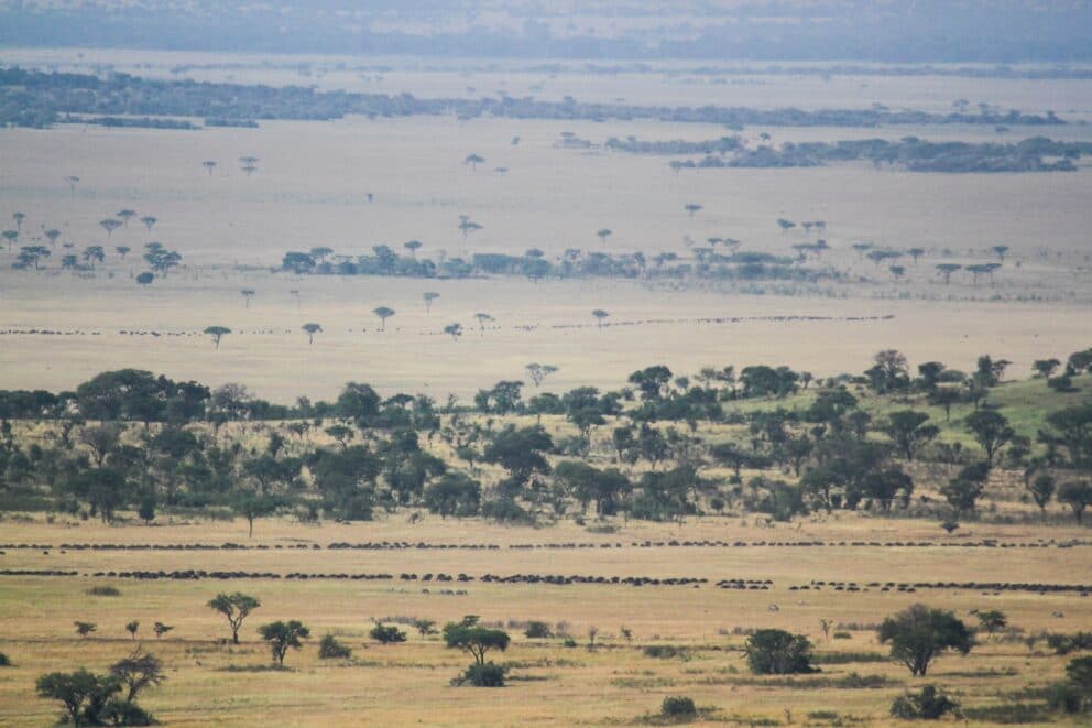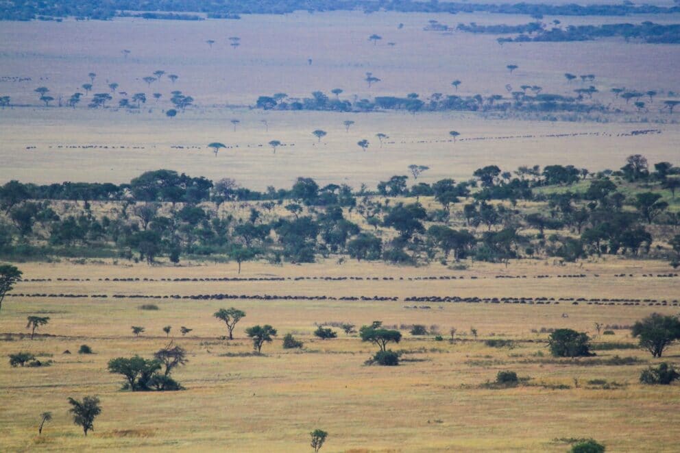 Yesterday evening there was some thunderstorm activity to the south of us. On Sasakwa Plains this morning there is a strong movement of wildebeest heading west towards Nyasirori as seen from Sasakwa Lodge.