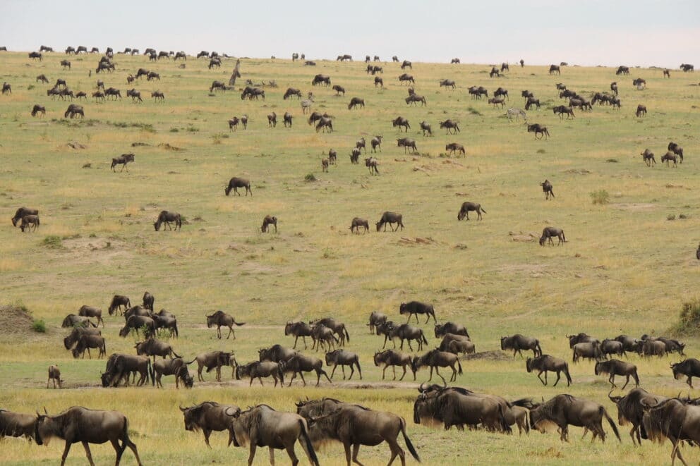Due to the current rains around the north of Serengeti / Mara, there are herds of wildebeest scattered all around the Lemai areas heading back towards the south west of the Mara River, where they crossed at Number 0,1 and 4.