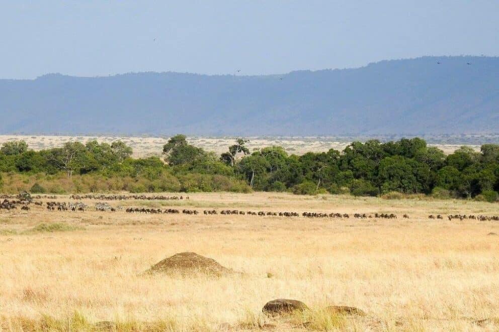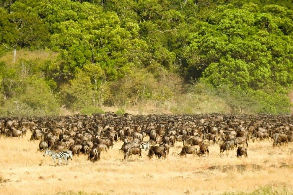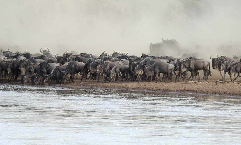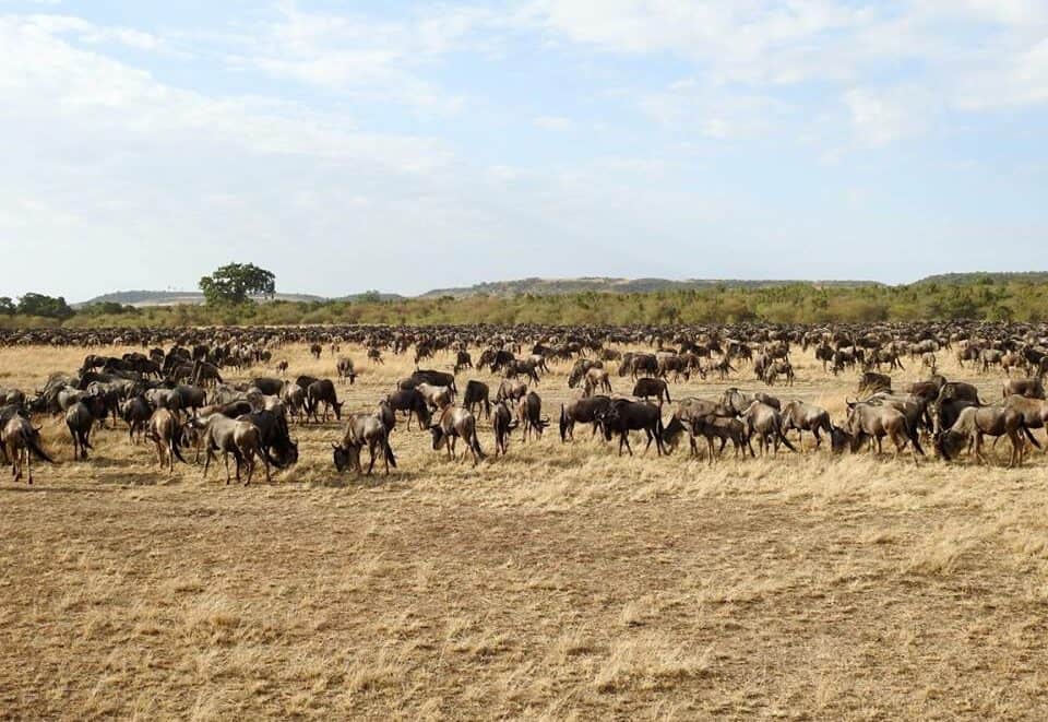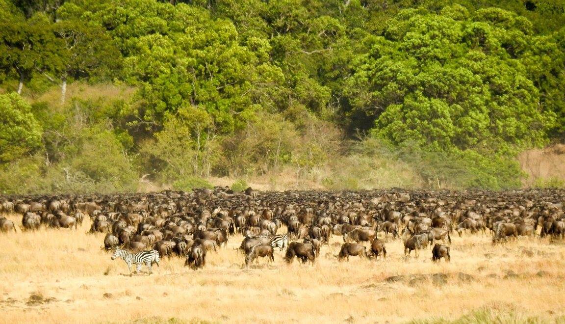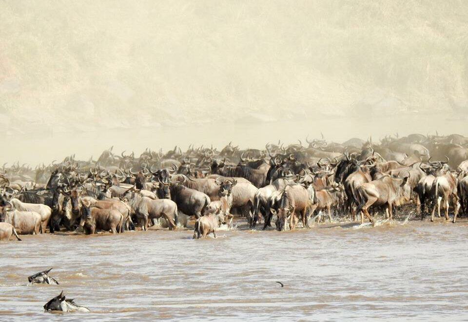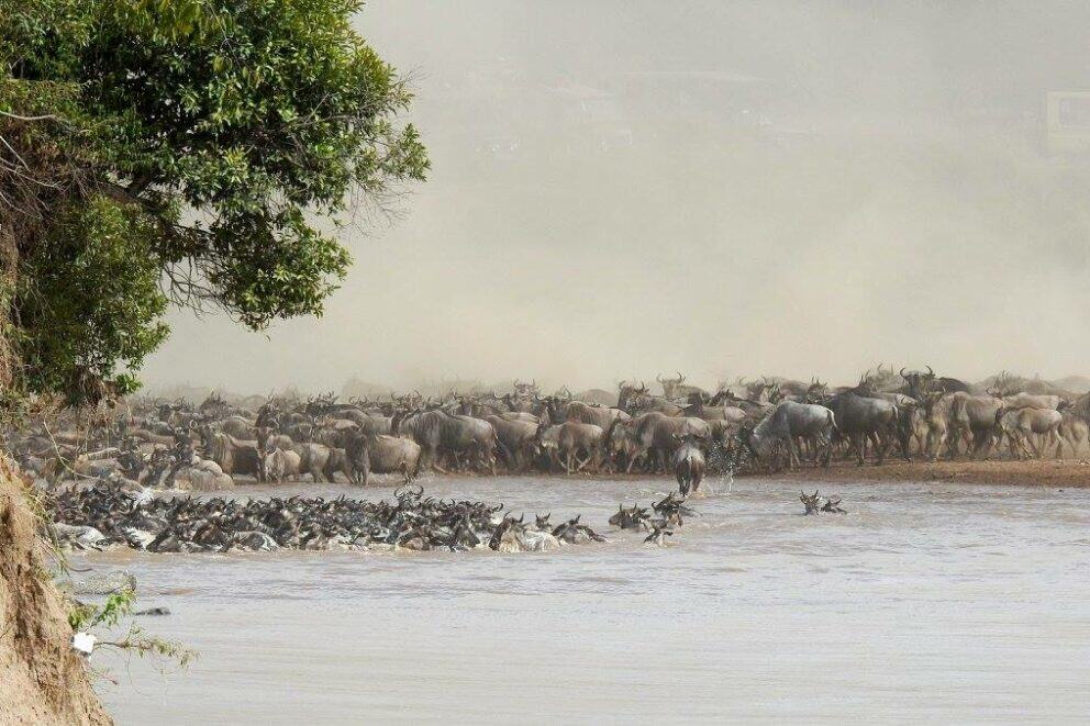 There was a large crossing yesterday morning of around 10,000 Wildebeest and a few Zebra.