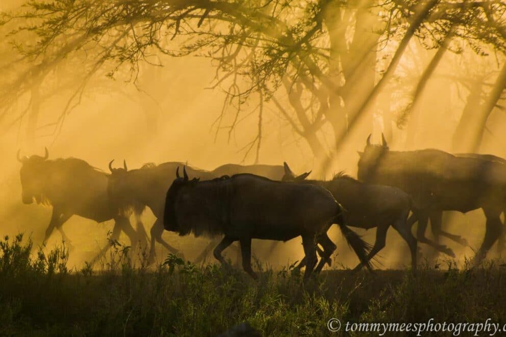A quick update – We spotted 2000 to 3000 wildebeest yesterday afternoon just outside Serengeti Pioneer Camp kicking up dust in the late afternoon light. Heading towards Moru