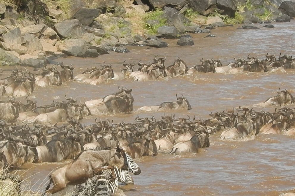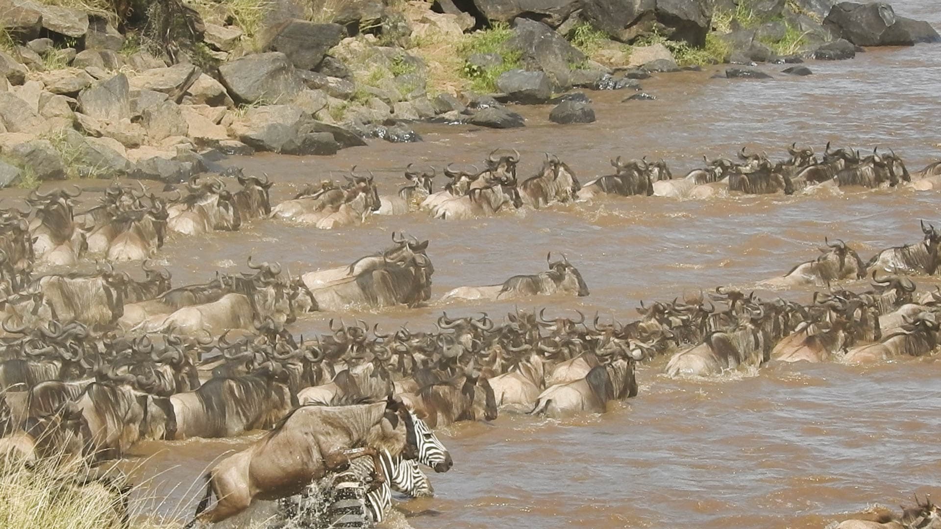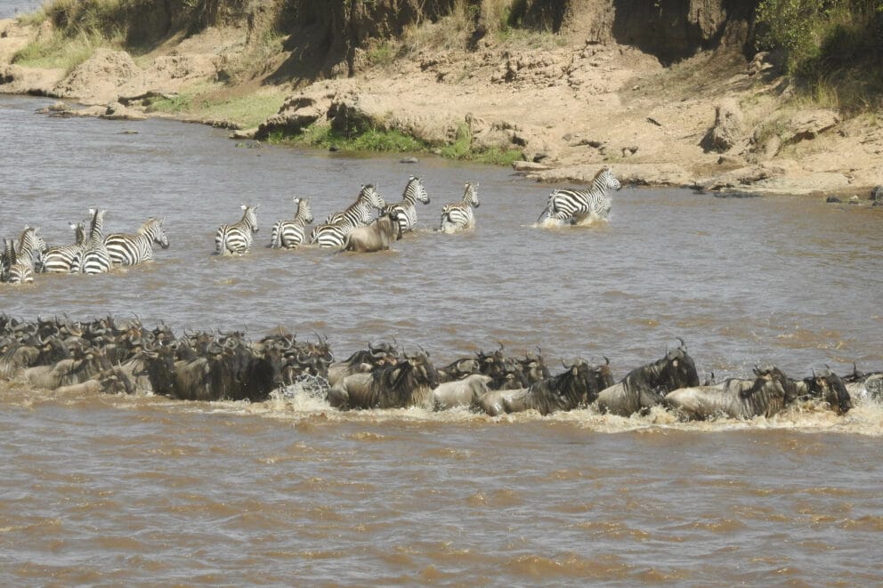 There was a good crossing this morning on the Mara River at the cul de sac crossing point going from east to west with an estimated 20,000 animals crossing and four taken by crocodiles.