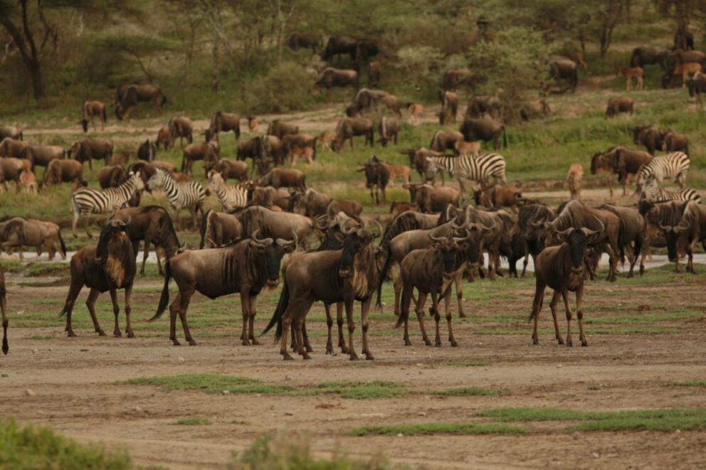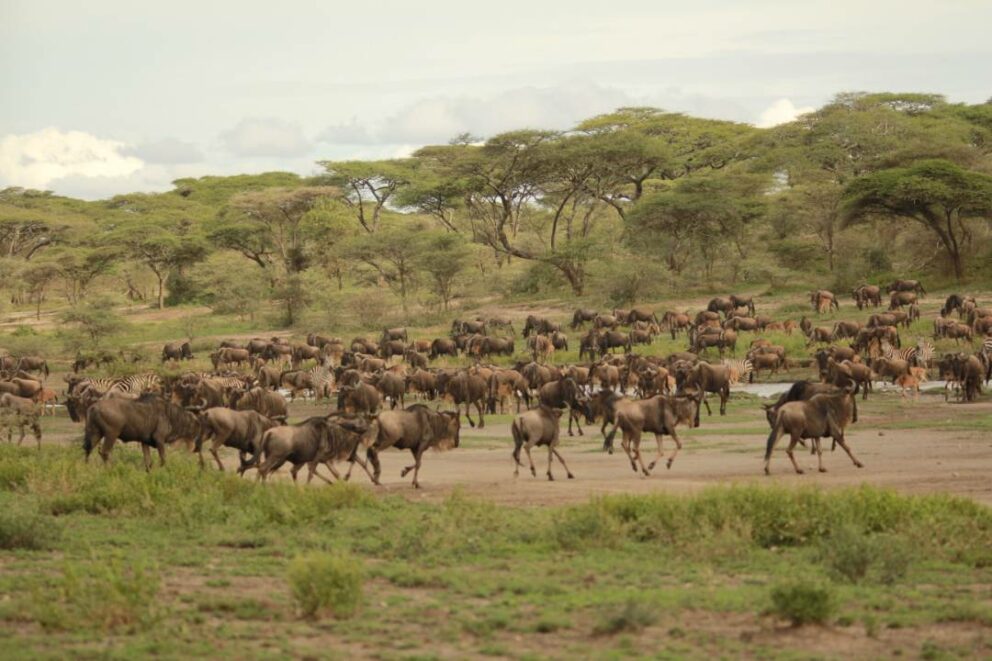 ENQUIRE TODAYA big number of the wildebeest and zebra were seen migrating near the small marsh in the Ndutu area.
