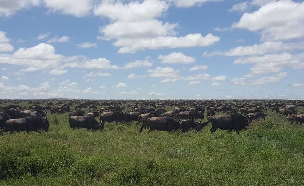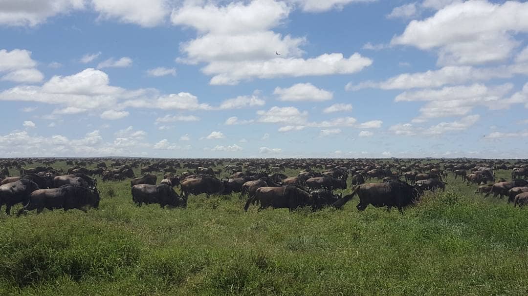 A large number of herds were seen between the Naabi Hill and Simba Kopjes area, moving towards the Central Serengeti.