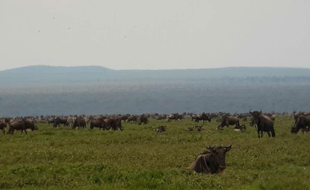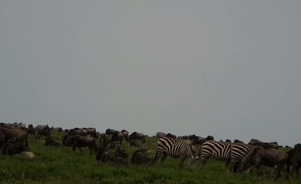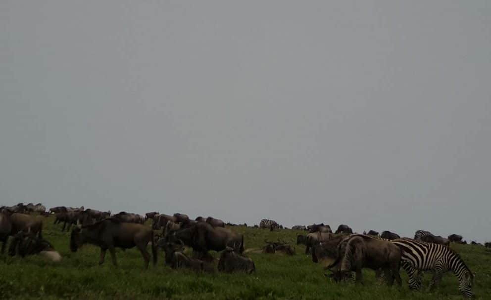A large number of the wildebeest and zebra are migrating in the Naabi Hill, towards the Gol Kopjes and the Ndutu Forest.