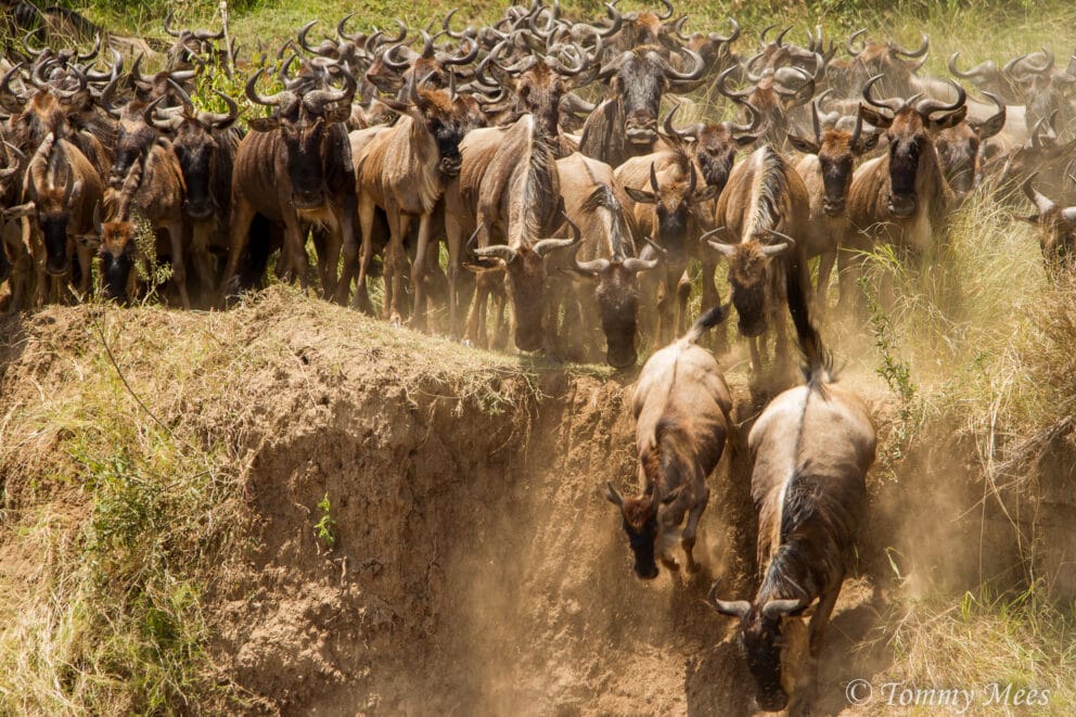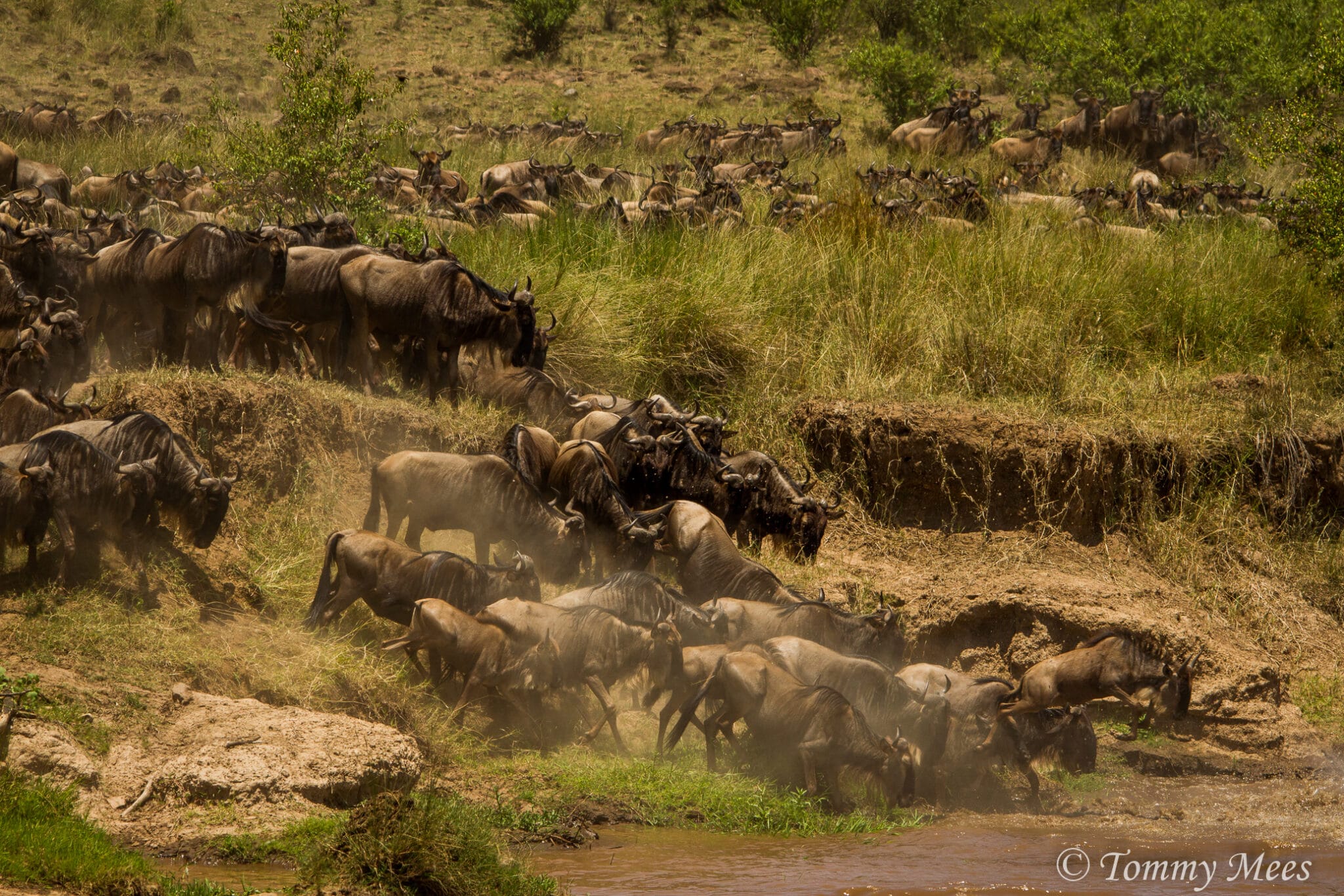 We saw an amazing crossing yesterday at the Serena crossing point, which lasted for just under an hour. Roughly 3000 to 4000 wildebeest and 10 zebra crossed the Mara River.
