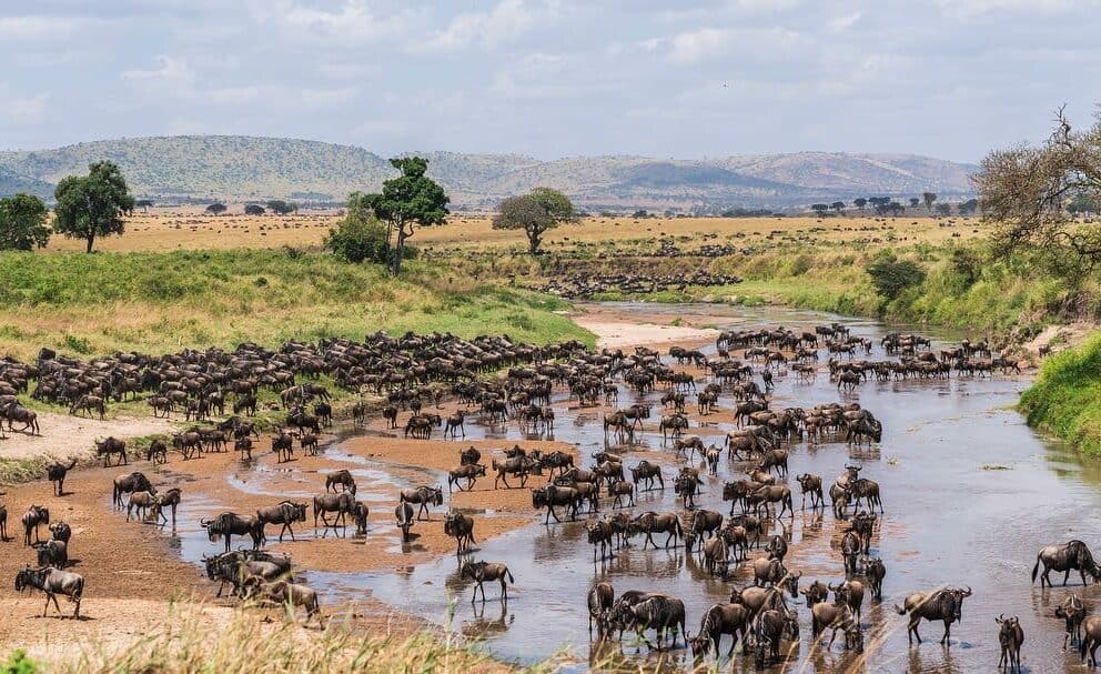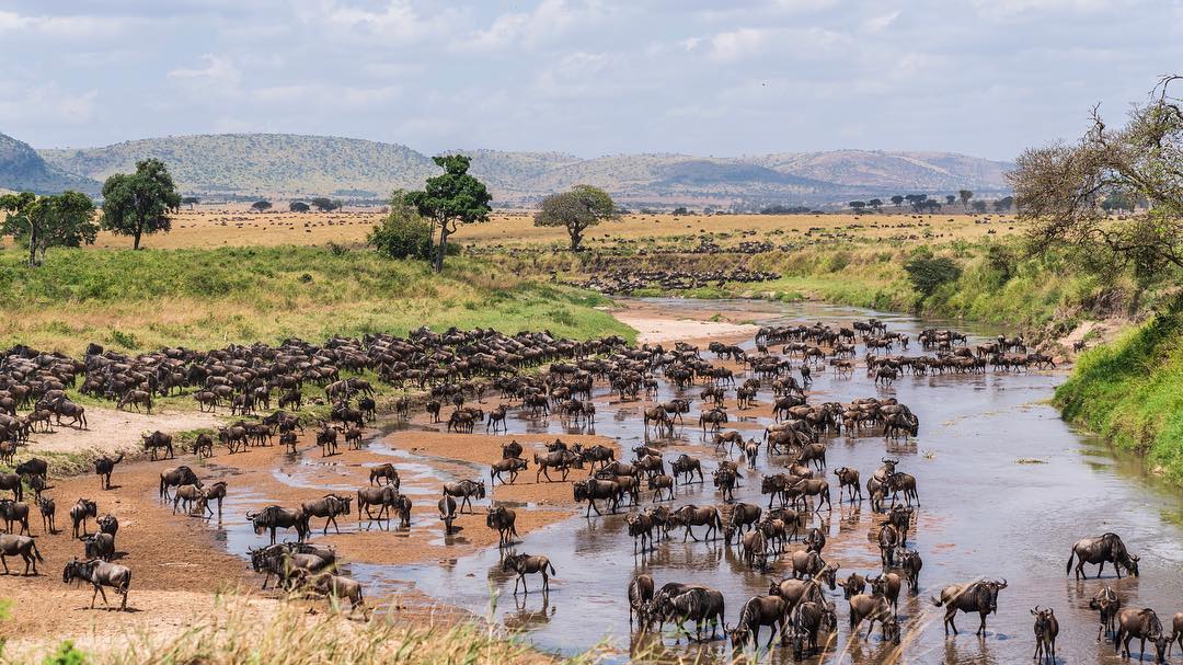 Kevin was following the annual migration when he saw a large herd of the wildebeest roaming the Sand River.