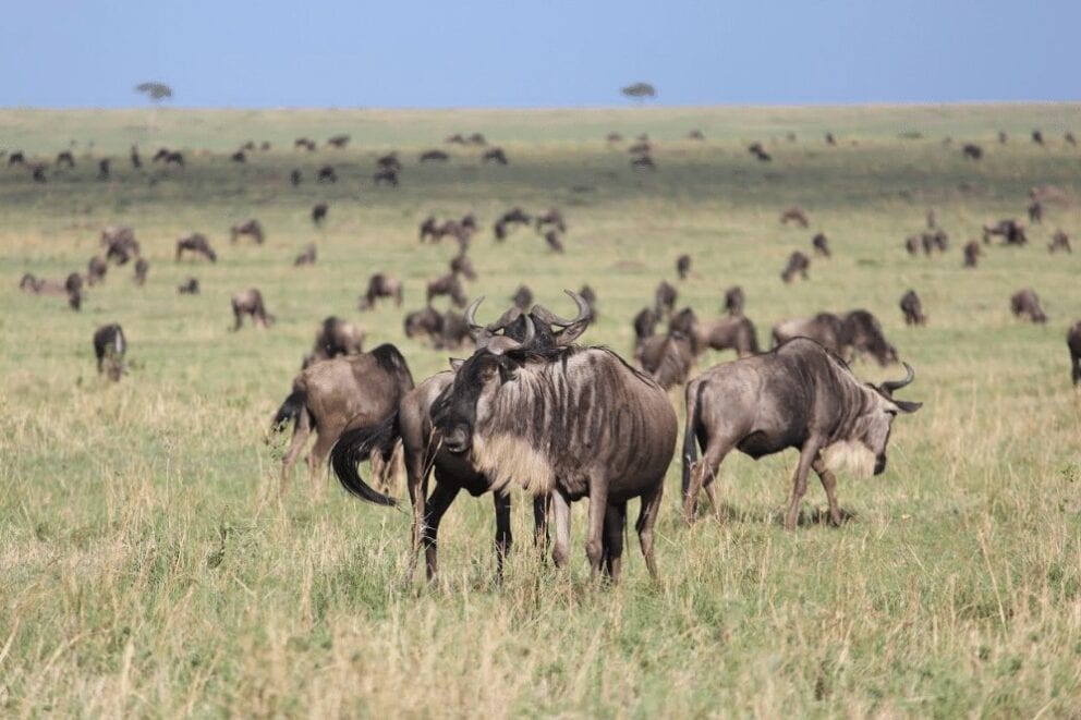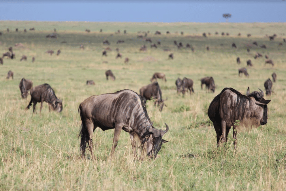 Big herds of wildebeest across the Lookout Hill plains today. very big crossing at lookout also heading to the Mara triangle. I happened to have missed out the crossing though.