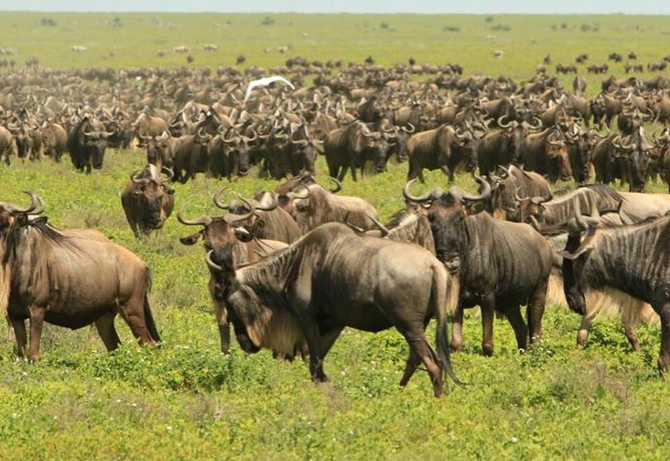Safari guide Filbert Mbise captured the great herds roaming in the Ndutu area spread out across the marsh area moving into the open plains of the southern Ndutu.