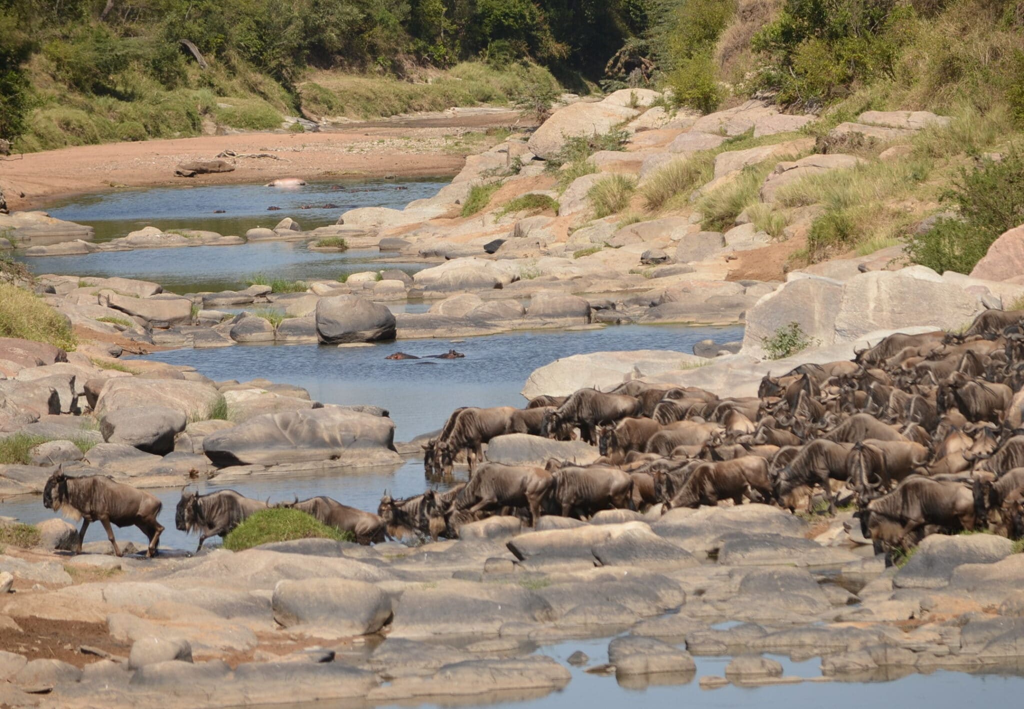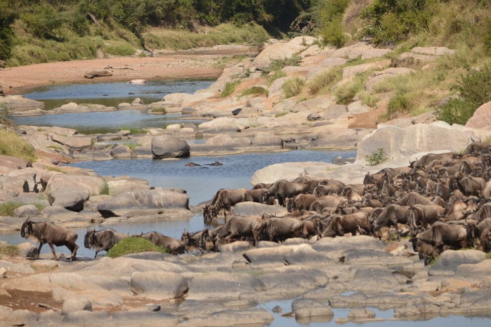Charlie….the leader…. leading the herds as they cross Talek River Rekero crossing this morning.