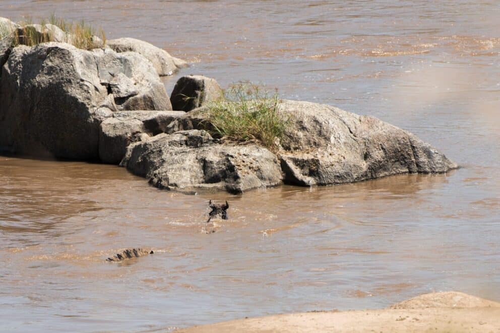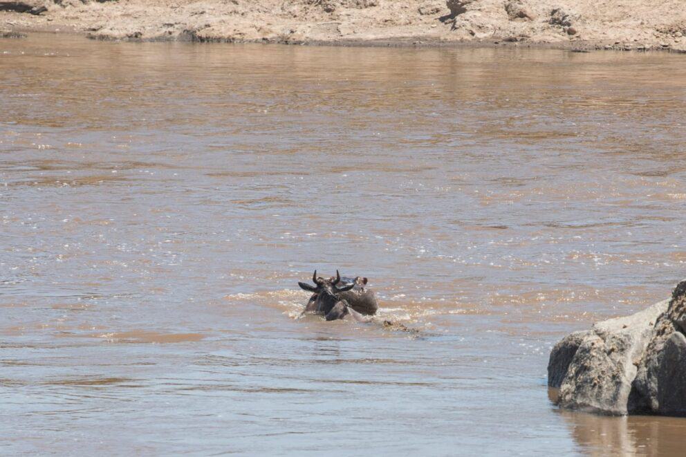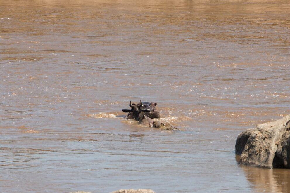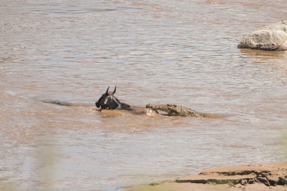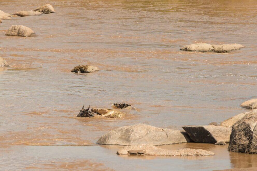 The crossing was estimated at about 3000 animals. One killed by crocodiles. Two drowned.