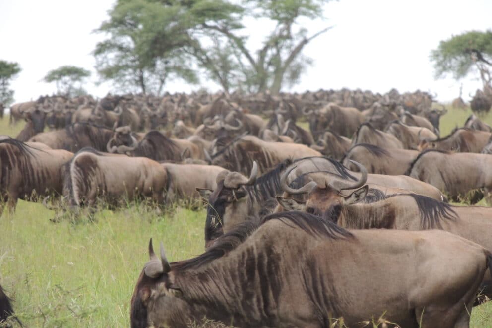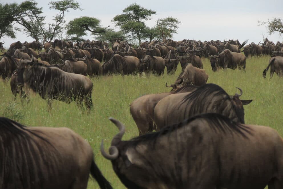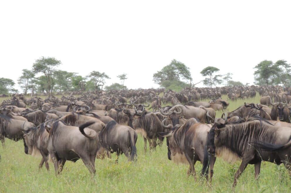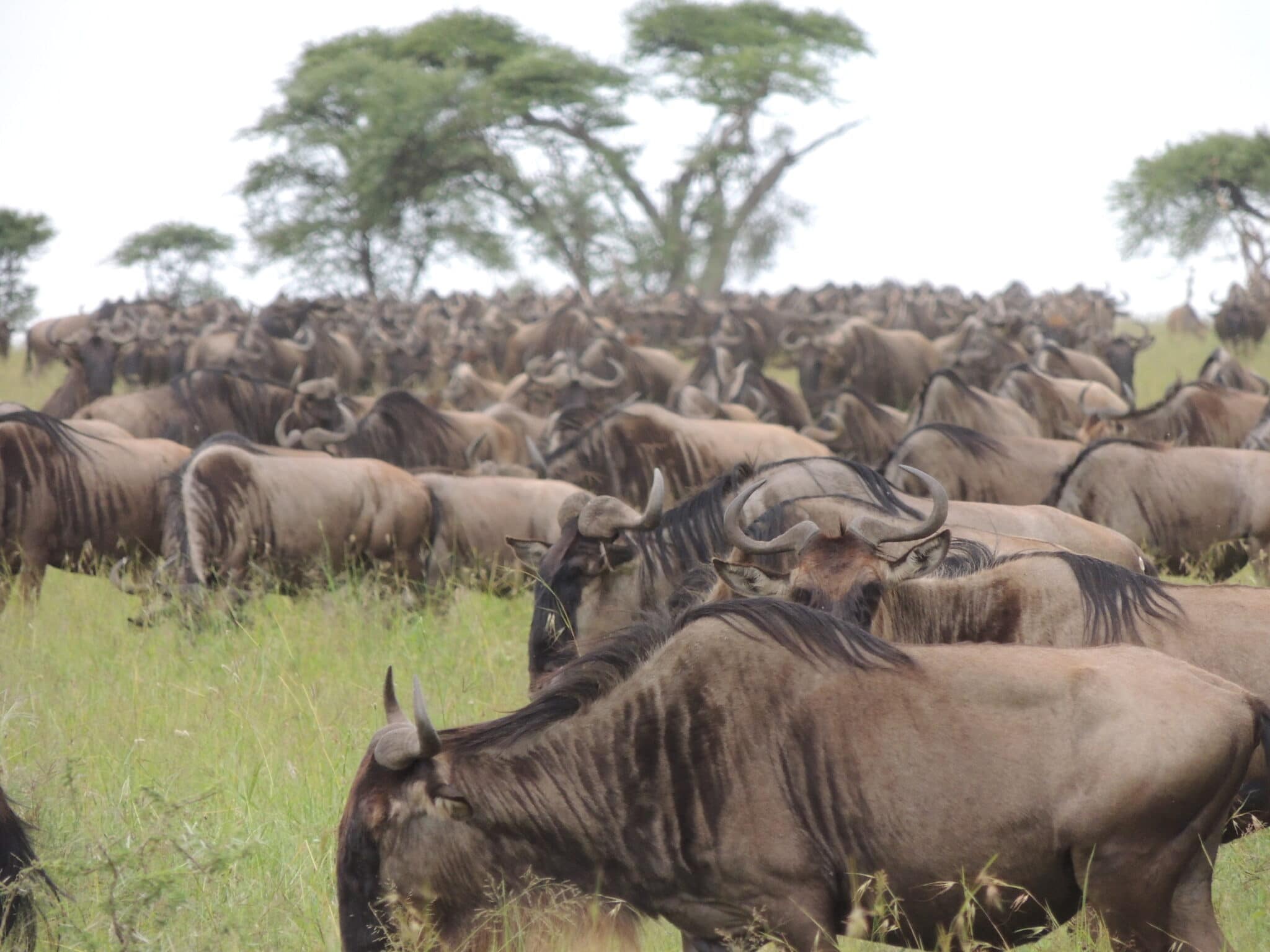 I'm currently in the Serengeti where herds of wildebeest migration from the east are approaching the Seronera areas. It is still raining. The herds are fairly densly packed and on the move towards the north-west. I will keep you posted.