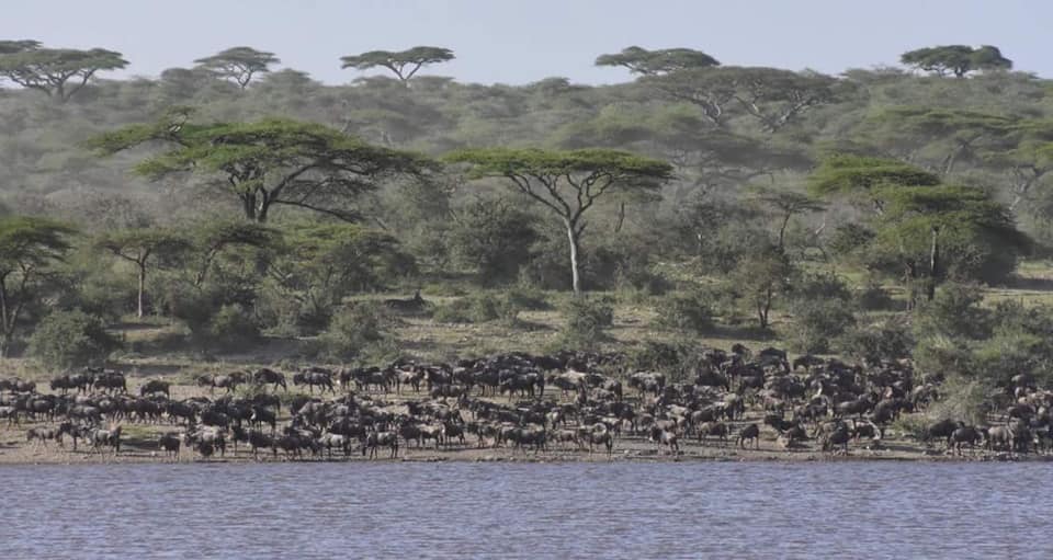 The Great Migration is roaming on the open plains of Shamba la Maharga moving towards the Naibatat Hill and Albida Plains. However, a small herd was seen in the woodlands of the Lake Masek.