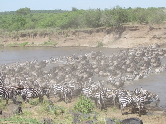 Front-end, some good numbers crossed from the Mara Triangle into the Musiara marsh area, good news for the marsh pride with their new cubs, so finally the herds are where they should be and right on time. At the Kogatende area things are still busy, some regular crossings at crossing point number 4 in-front of Lemala Mara and 7&8 in-front of Sayari. A little rain in the Mara so the herds should stay there for a while. The new grass expected at Lamai and Kuria (Serengeti) should result in some crossings back and forth in a few weeks from now. See some zebra crossing picture, thank you Ariana at Governors!