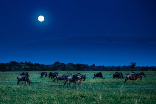 Hi Carel no rain here for a week or two now and the grass around Four Seasons is starting to turn yellow. There are however still scattered herds around and the whole way along the Ikoma Circuit and our access road we are still driving through wildebeest – plus some very well fed lions! The dry weather has brought loads of elephants to our waterhole too – we had over 100 visit yesterday and have had a constant stream come to drink and swim this morning too. It’s heating up, so hopefully we will get more rain soon though. I thought I would share this full moon photo with you, that was taken near the Lodge the other night by photographer Rick Collins. Cheers Oli
