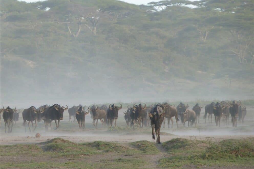 There seems to have been a lot of rain out past Ndutu which is bringing the wildebeest streaming back from Olduvai, Lemuta in the direction of Kusini.