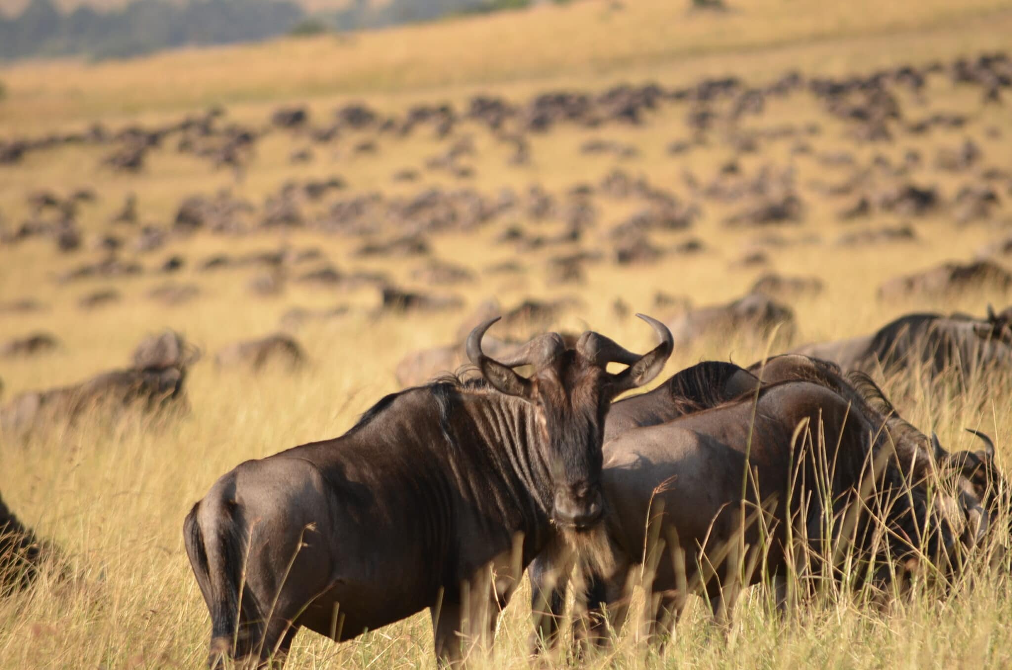 We are witnessing what we believe is half the population of the entire migration, which translates to over one million wildebeest and zebras down here in the Masai Mara..they are still grazing around South East of the Reserve around the Keekorok and Sand River area'