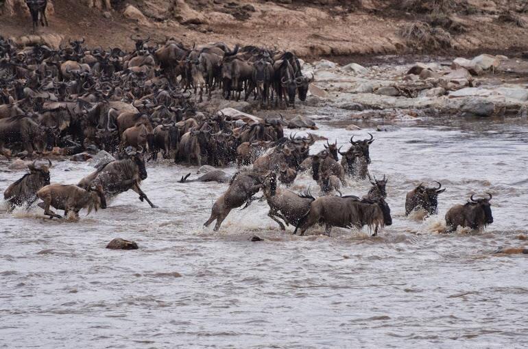 Safari guide Sammy Kaleku saw hundreds of wildebeest crossing over to the Mara Triangle side, Mara Reserve.