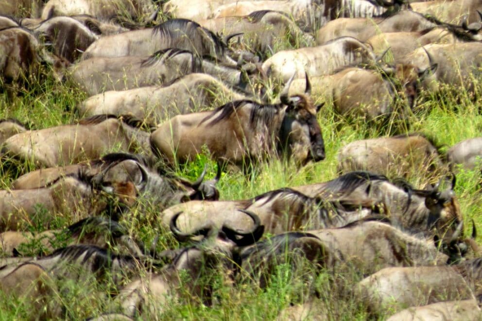 Sala's Camp says thousands of wildebeest and zebras have arrived in front of camp over the past few days. Here are some of the images.