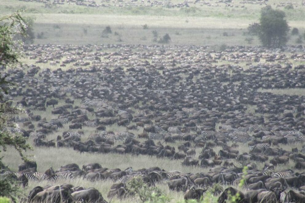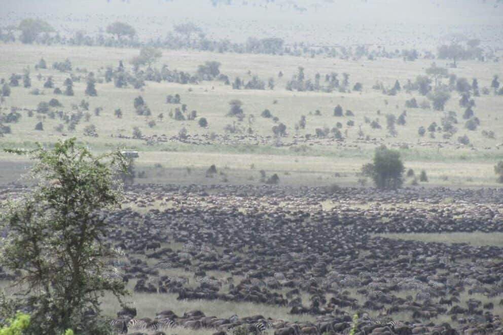 Nomad Tanzania safari guide, Ian Kiwelu spotted a large herd along the Mawe ya Simba, very close to the Kusini airstrip.