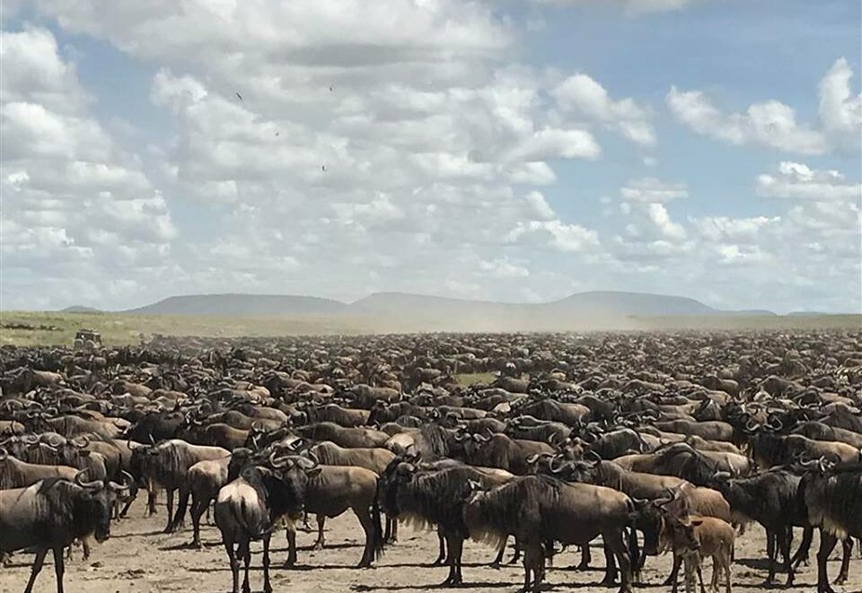Lodge Manager, Ainslie Wilson captured a large herd of the migration streaming to the south onto the Ndutu Plains.