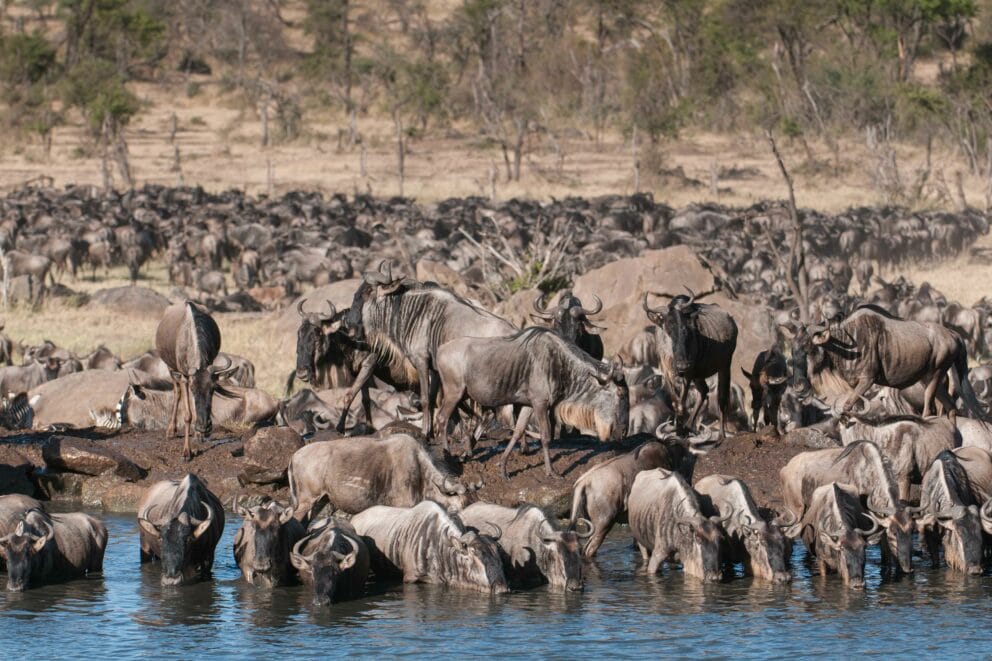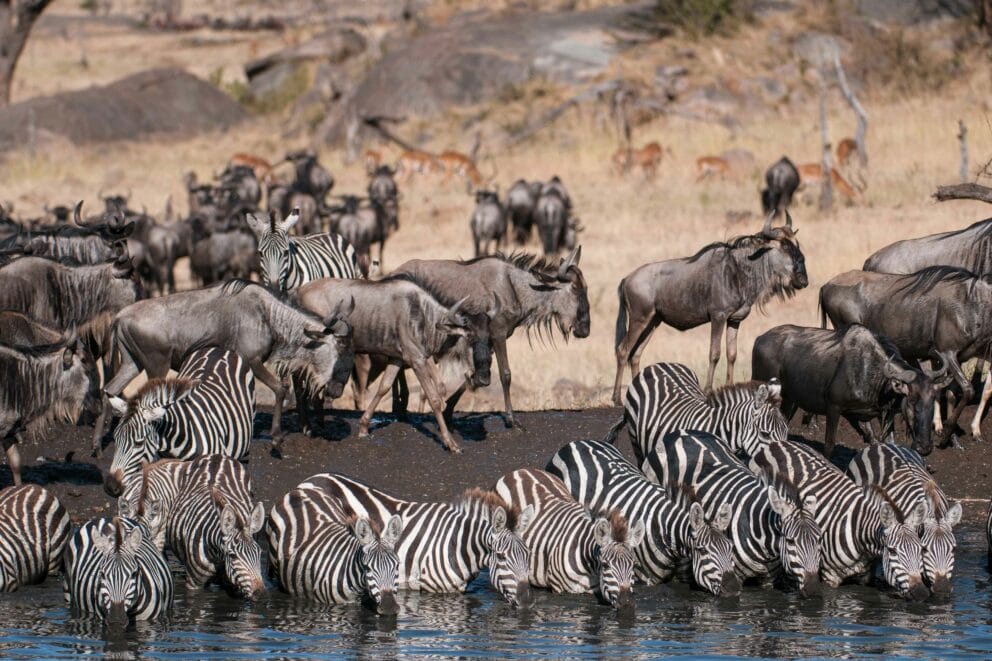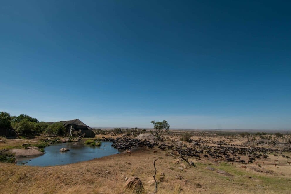 We have had increasingly large numbers of wildebeest and zebra visiting our waterhole every day, all day, over the past week. The last two days have been exceptional with a constant stream of animals coming to drink, so much so that the waterhole has become less than half full.