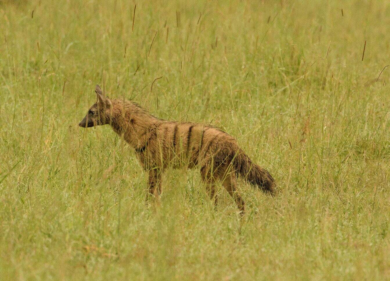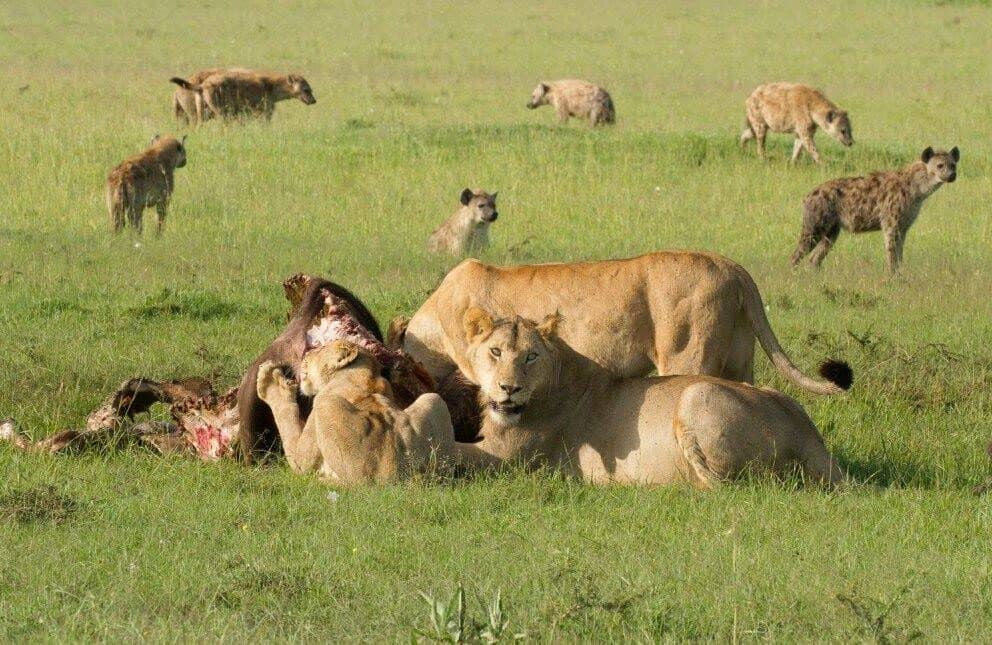 A small shower of approximately 16 mm of rain last night kept a blanket of cloud cover over the Mara until 9.30am. The marsh pride had killed a large male buffalo south of the Bila Shaka river bed in the early hours of the morning, all 11 lion had eaten well, this was well deserved meal a great sighting to see all of them participating. Red, Tatu, Sienna's three sub adults and Charm with the five lionesses, there were over 50 spotted Hyena and many Black backed Jackals this morning when the marsh pride was feeding; the Hyena eventually had the remains at 10.00 am.