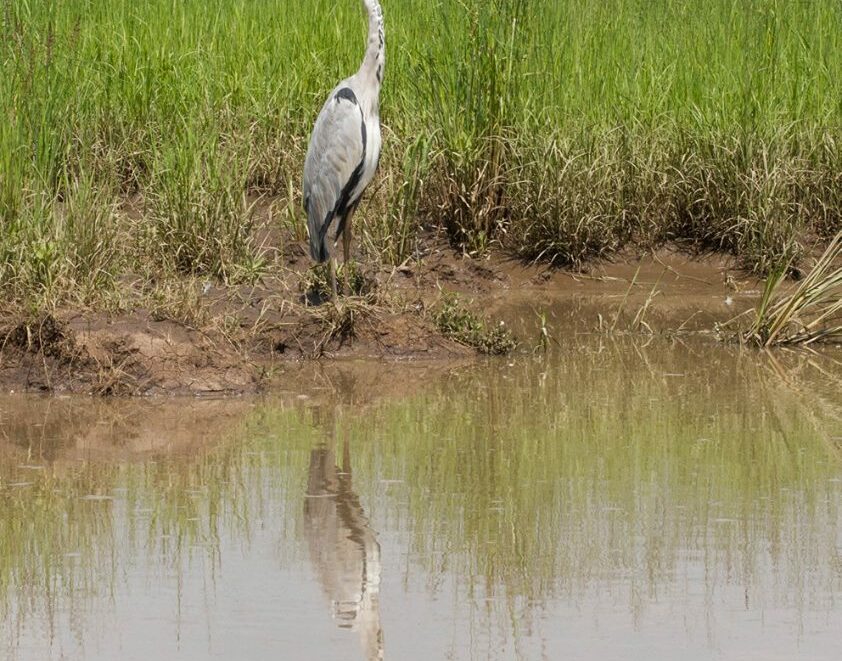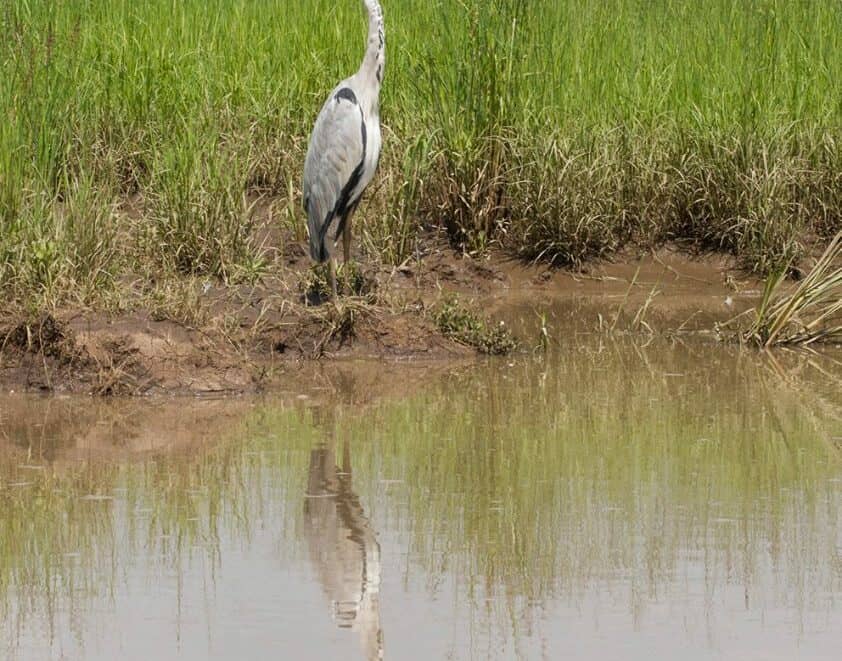 Large flocks of open billed storks who are a highly gregarious small Stork, with an unusually-shaped and highly specialized bill will be seen in the centre of the marsh for water levels are higher and also most likely food value is more available, often at midday they can be seen circling high with the thermals. Black necked Herons and Grey herons will also be seen along the verges of the marsh and many other of the stagnant waterways.