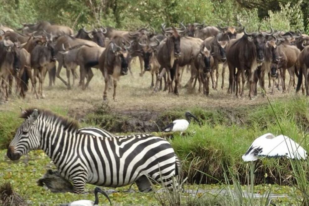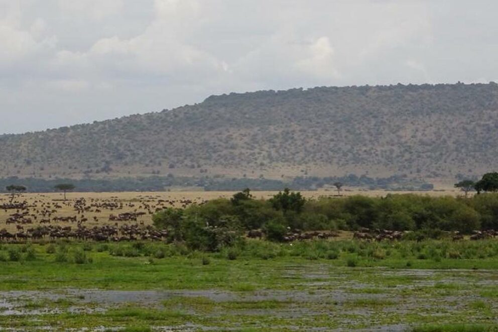 Masses of the wildebeest were seen on the plains of the Masai Mara National Reserve drinking from the marsh in front of the Little Governors Camp.