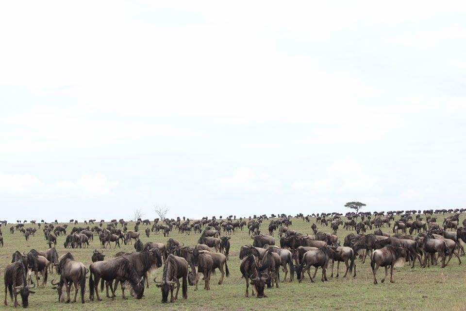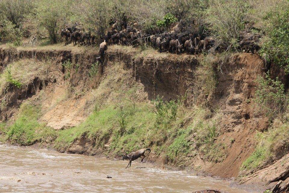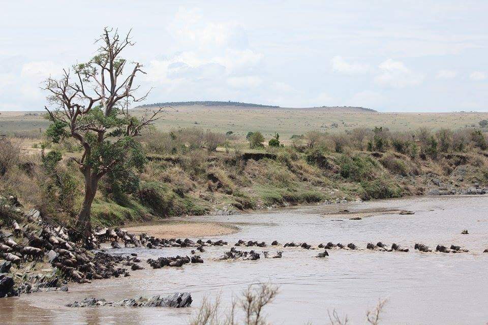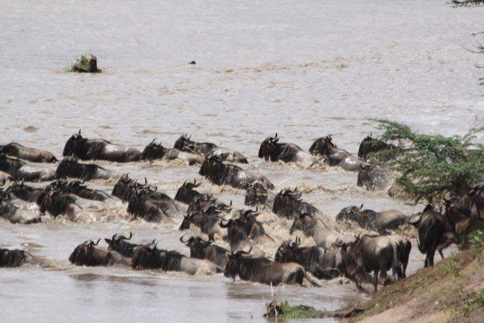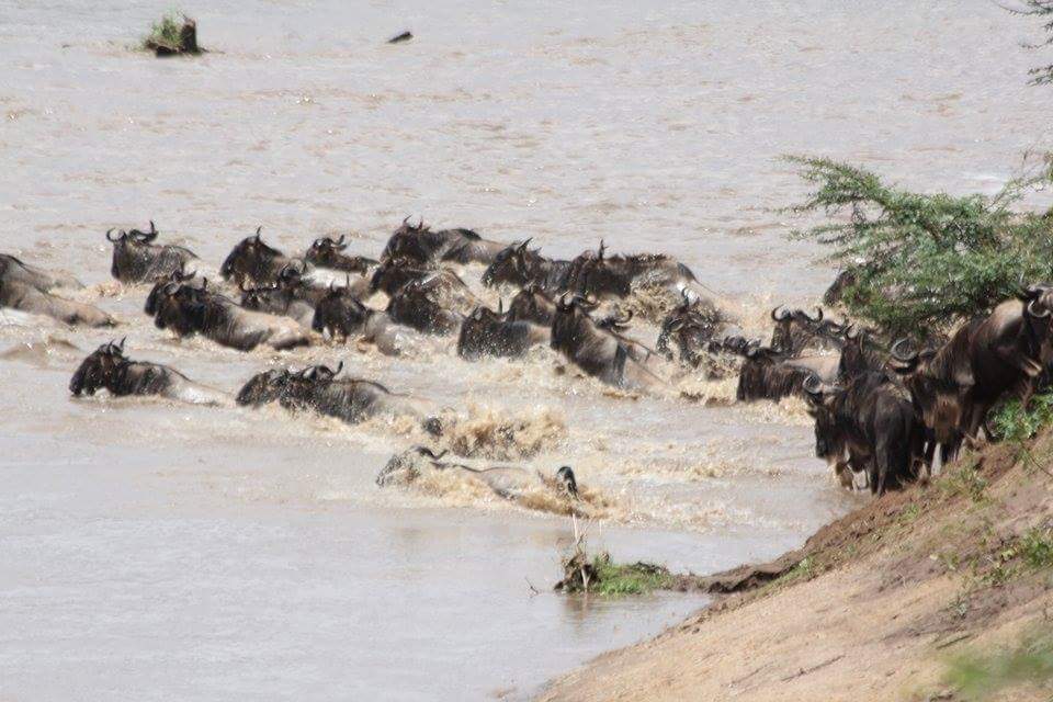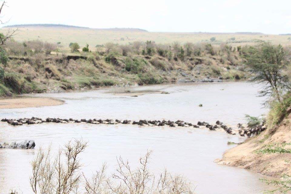 Yesterday, 10,000 wildebeest crossed from the Mara Triangle into the Mara Reserve at Lookout Hill.